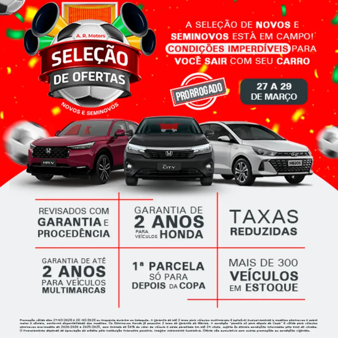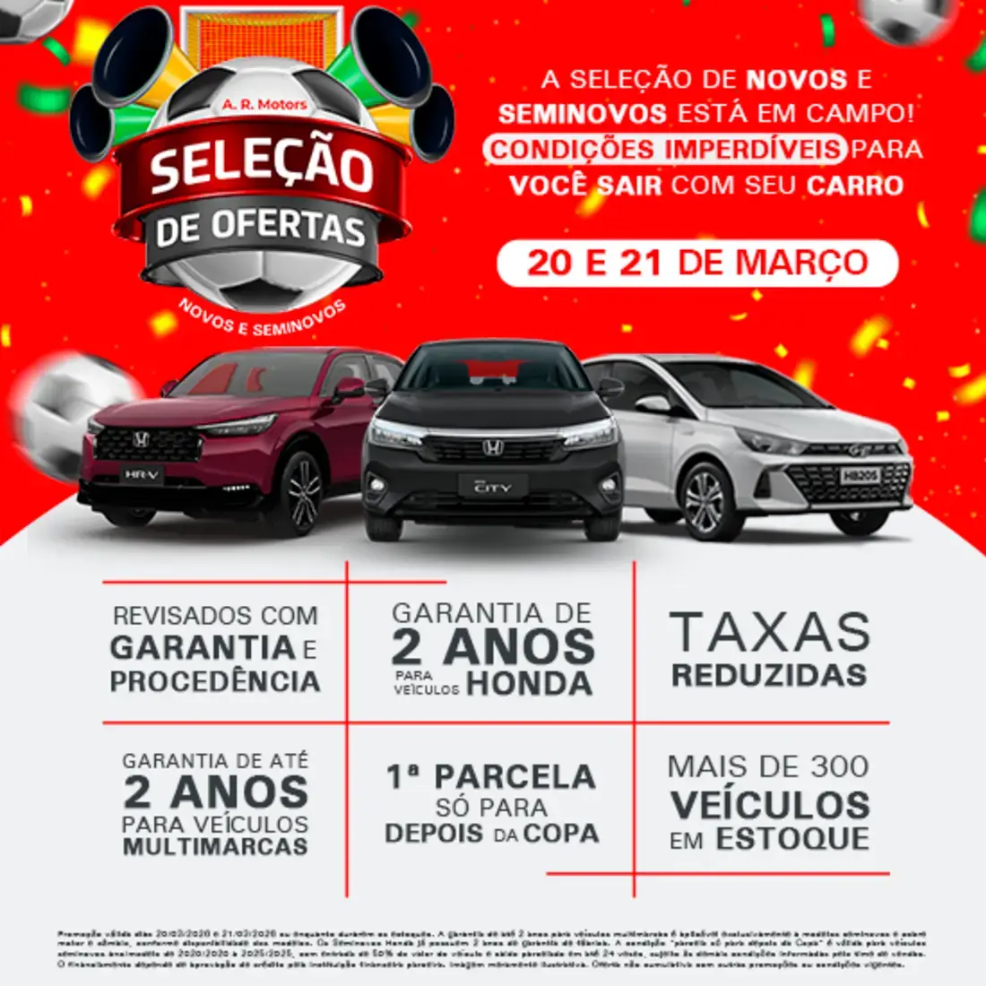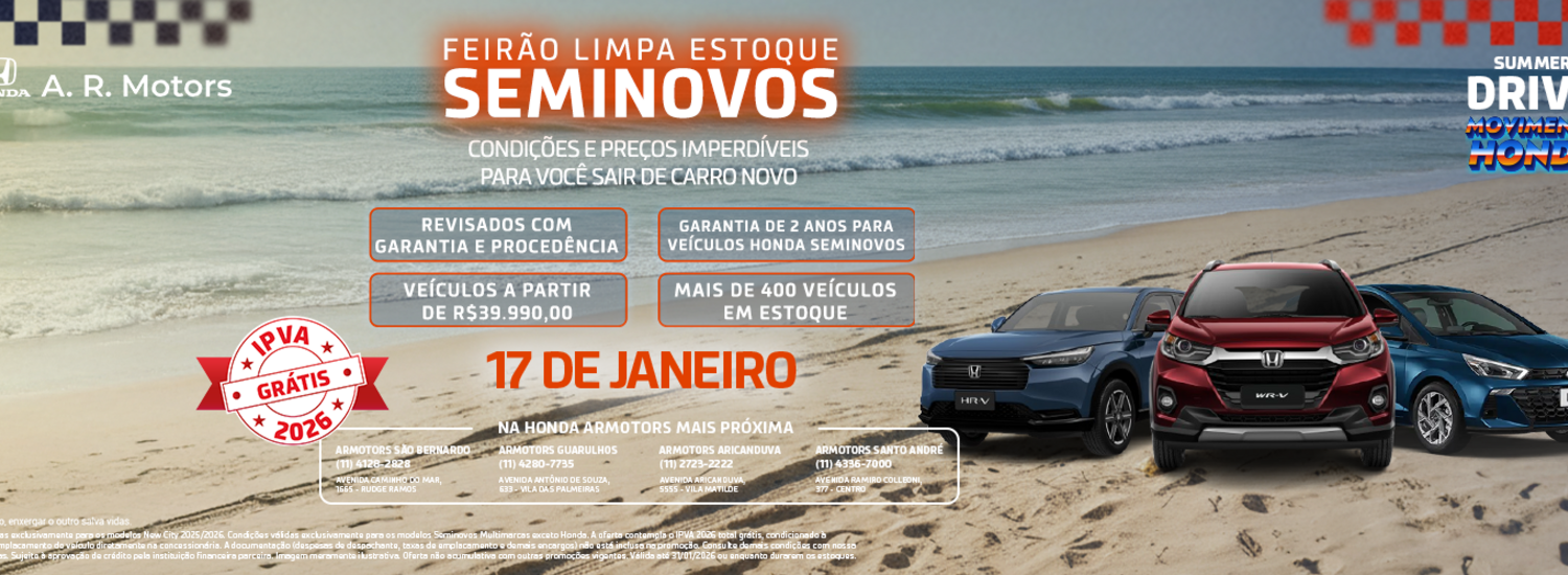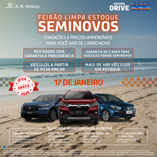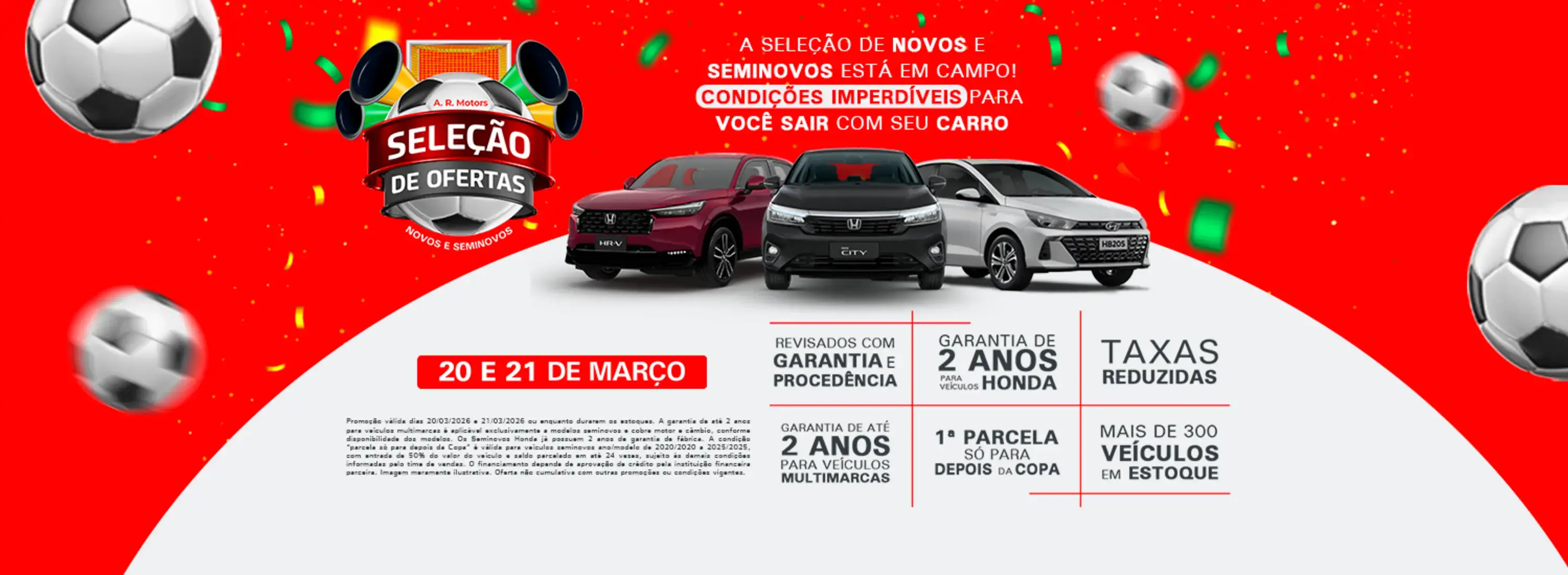 Nós da Honda A.R.Motors seguimos os padrões de qualidade e confiança da montadora nas 4 concessionárias em diferentes cidades nos estados de São Paulo em que operamos. Dentro de nossas operações oferecemos todos os produtos da Honda, sendo eles, venda de veículos novos e seminovos, serviços de manutenção, peças e funilaria e pintura automotiva.
